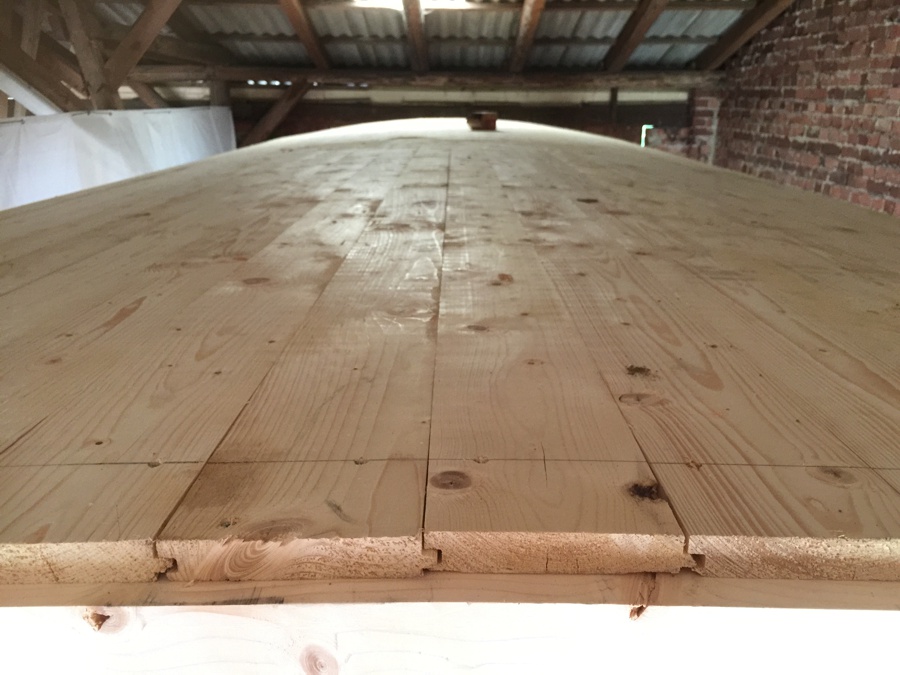 Zwischen der Balken-Unterkonstruktion vom Wagen Siebdruckplatten eingebaut. Stöße mit Silikon abgedichtet. Jewils alle 4 Seiten jeder Platte.