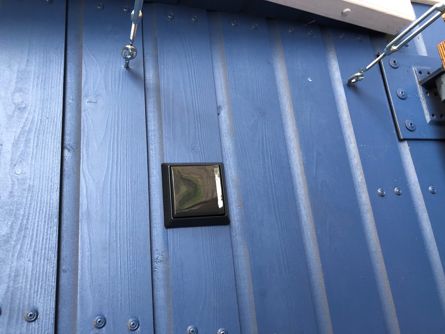 Verkleidung der Seilwinde. Die von innen gesteuert wird um den Balkon an der Giebelseite über der Deichsel hoch und runter zu lassen.