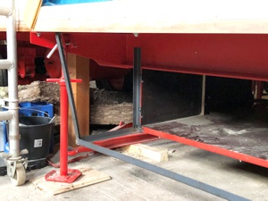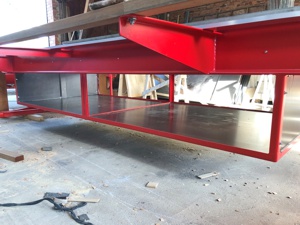 Montage der schwelle auf dem neuen Fahrwerk als Unterbau für die Siebdruckplatten.
