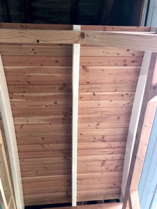 Der Wagen von innen - OSB-Platten inkl. Lattung für die Profilbretter im Innenbereich.